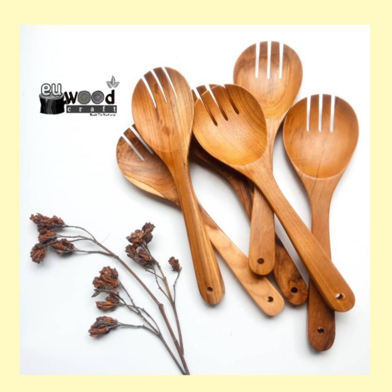 dari bahan kayu jatiuk P 22cm Lebar muka 6cmKelebihan dari bahan Kayu jati termasuk golongan kayu ideal karena kekuatan, keawetan, dan keindahan serat yang dimilikinya. kayu ini sangat tahan terhadap serangan rayap dan jamur. Selain itu, kayu jati memiliki daya tahan yang baik terhadap cuaca dan perubahan suhu.finishing foodgrade beeswaxBeeswax adalah produk wax polish terbuat dari lilin lebah dan natural oil. Produk yg difinishing membuat produk :*Lebih tajam warnanya*Lebih halus permukaannya*Anti air*Higienis (karena mengandung antiseptik alami)*Indah dengan tampilan natural wet look*Tak mudah retak#spatulakayu #piringkayu #mangkukkayu #sendokgarpukayu #gelaskayu #piring #mangkuk #spatula #sutil #sendok