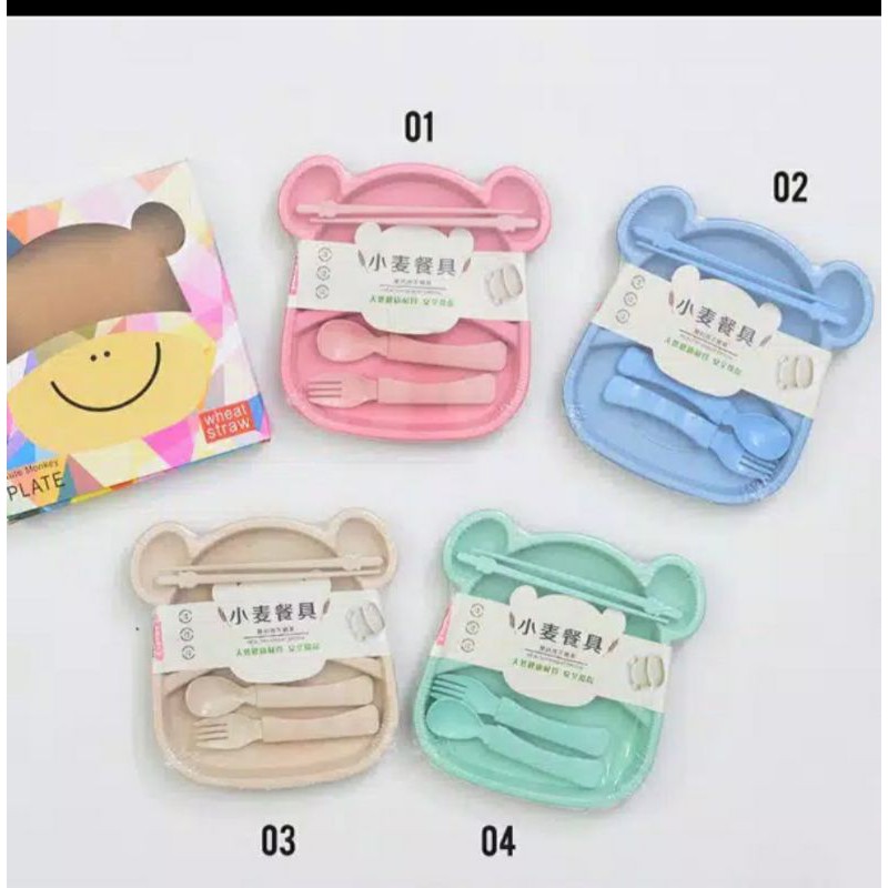 Name: Set Piring Makan Sendok Garpu Sumpit Cute Monkey Gandum Jerami Wheat Piring Lucu Viral Kekinian