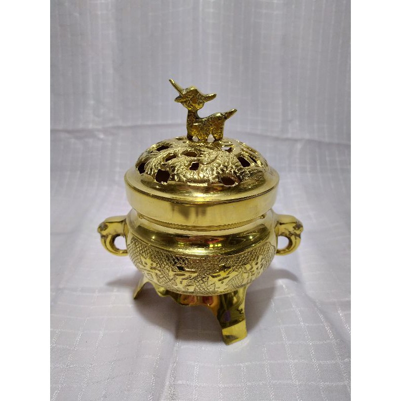 Tempat bakar dupa/buhur/kemenyan naga dari bahan full kuningan. Berat real 350 gramTersedia tiga variasi ukuran1. Besar d=11 cm2. Sedang d=10 cm3. Kecil d